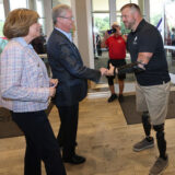 The Marion County Board of County Commissioners declared Thursday Travis Mills Day and some of the members were on hand at the event, including Craig Curry. Also in attendance was Ocala Mayor Ben Marciano and members of the Marion County Memorial Honor Guard, with the posting and retiring of the colors led by Donald Kennedy, Senior Chief Petty Officer, U.S. Navy retried.